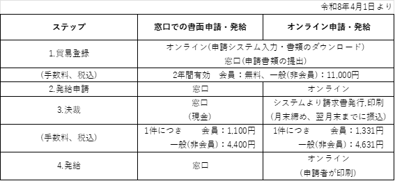 ※日本産原産地証明(すべて日本産の物品の場合)は、引き続きオンラ