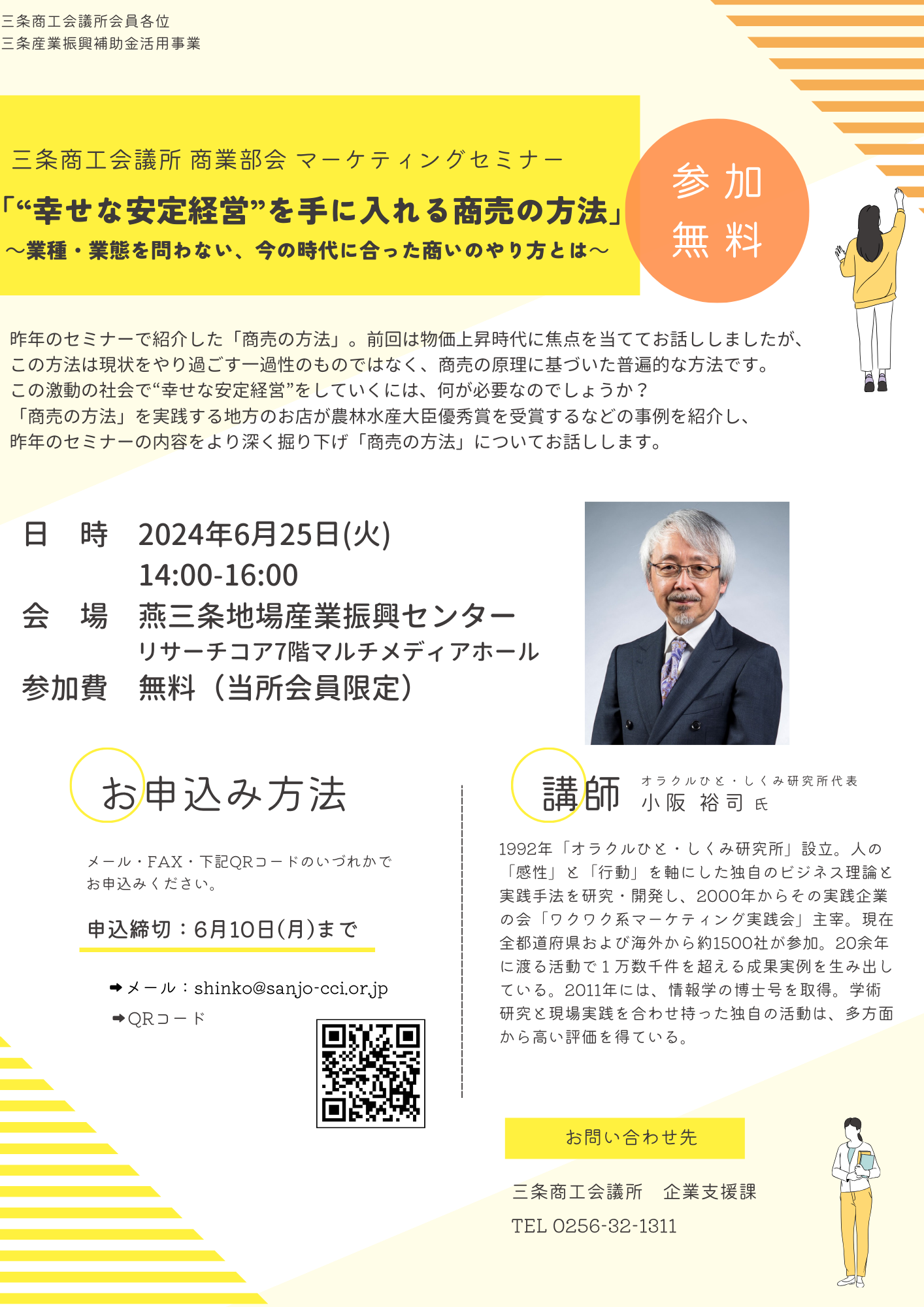 マーケティングセミナー「“幸せな安定経営”を手に入れる商売の方法」【商業部会】【終了しました】