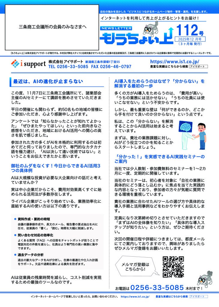 当商工会議所の事業やお知らせ、会員訪問等、三条商工会議所の今をお伝えする情報誌です。