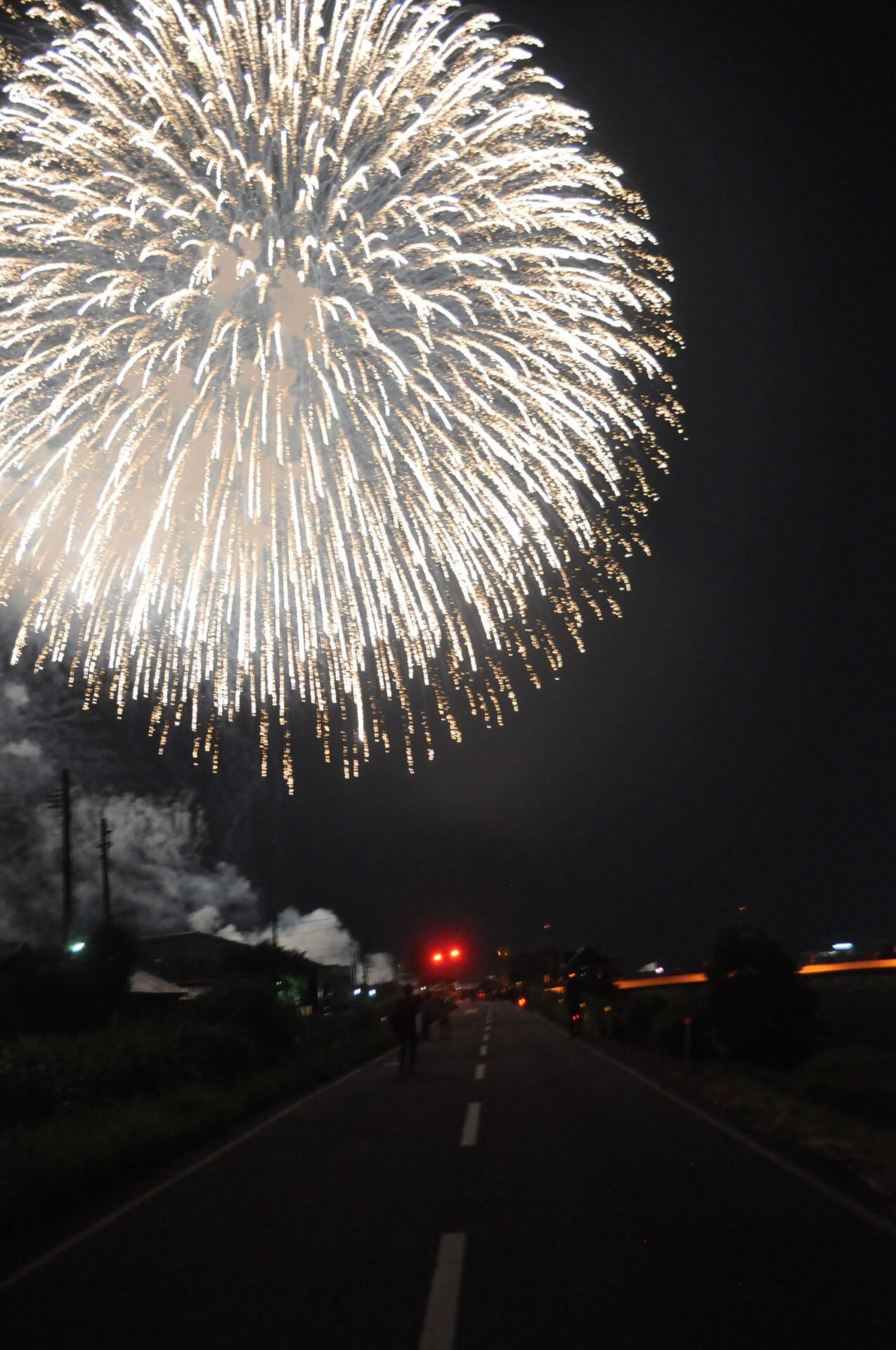 ことが三条夏まつり大花火大会の特長で、打ち上げの轟音とともに花火が開くたびに、詰めかけた6万人以上もの人々