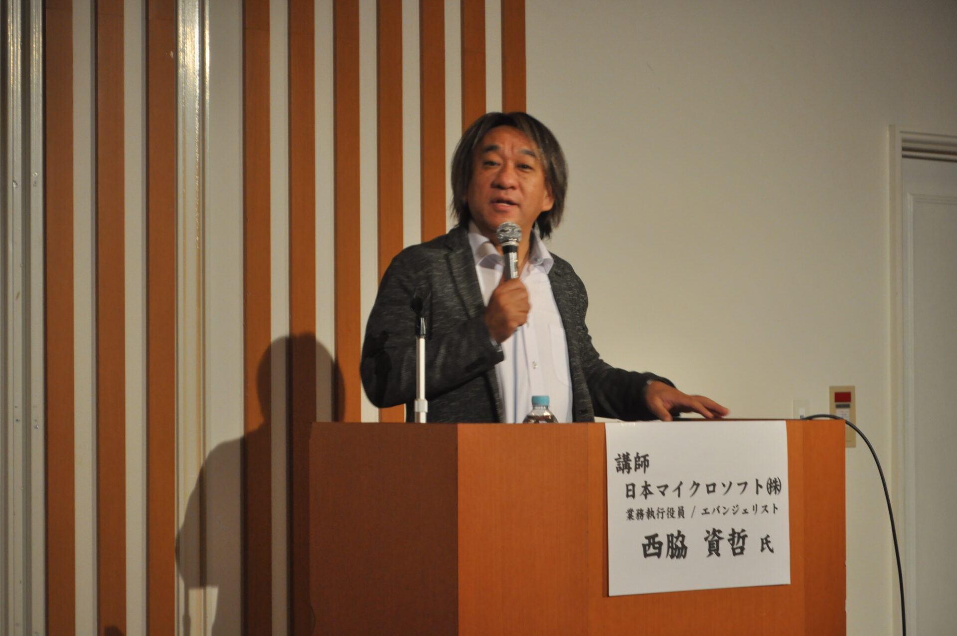 日本マイクロソフト(株)の業務執行役員でエバンジェリストの西脇資哲氏を講師に、生成AIとの関わり方や活用方法を学ぶセミナーが12月11日に開かれた。西脇氏は、「目的を知っている人、全員の生産性を上げられる。インターネットやスマートフォンと同様に、不可逆であり、今からすぐに使ってください」と利活用を促した。マイクロソフトのエバンジェリストは、同社が提供する製品やサービス、技術を分かりやすく紹介する職種で、西脇氏は「IT伝道師」としても広く知られている。