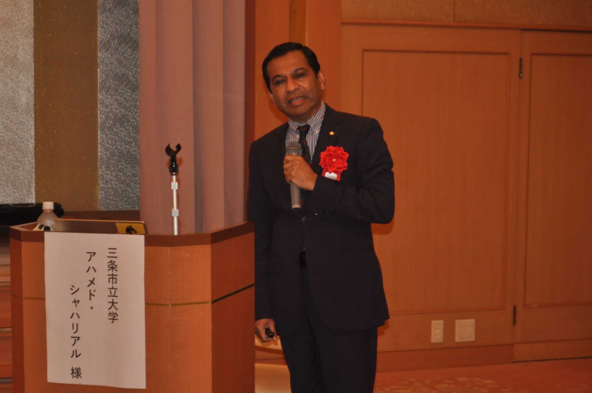 当所通常議員総会に合わせて、三条市立大学のアハメド・シャハリアル学長が 「10年後の現場へ!実学が導く“創造する技術者”の時代―技と知の融合、作る から“価値を創る”―」の演題で講演した。シャハリアル学長は今年度、三条市 立大学が初めて送り出した卒業生のうち就職希望の59人中8人が燕三条地域 (県内25人)、34人が県外に就職した実績に触れ、「燕三条地域からの入学 者は1人であり、8人が燕三条地域に就職した実績は決して少なくない。あえ て何の誘導も行わなかったが、この数字が少ないということであれば各自治体 とさらに連携し、前向きな方向へ向かわせることができる」と述べた。 人口減少の時代にあって「若者の存在そのものが持続可能性であり、若者が居 心地のよいまちこそが、持続可能性の高いまちづくり。学生の8割が地域外か らやってくる三条市立大学は、ある種の魅力を作り出せたということだ」と、 同大学の方向性に確信と自信を見出している。 三条市立大学は「若者の転出抑制」を所期の目的の一つとして開学した。 シャハリアル学長は「大学の開学はゴールではなく、連続した取り組みが必要。 地域内外の中学生、小学生、幼稚園児まで三条市立大学で学ぶことに憧れを抱 いてもらえるようインパクトを与え続けなければならない。この地道な取り組 みが実った時、三条市立大学は唯一無二の存在となる」と、地元出身者の入学 を促す取り組みも重要視している。